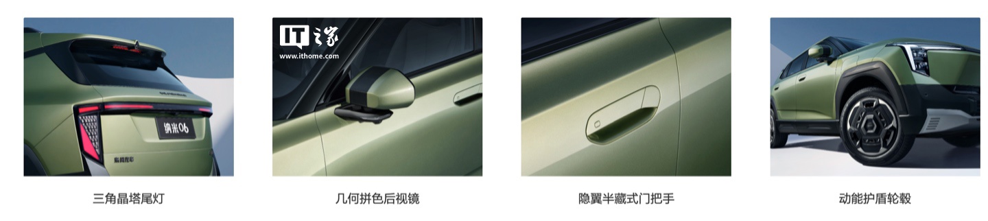 401 Air 版:限时 7.99 万元,原价 8.99 万元401 Pro 版:限时 8.99 万元,原价 9.99 万元401 Ultra 版:限时 9.99 万元,原价 10.99 万元471 Pro 版:限时 9.99 万元,原价 10.99 万元471 Ultra 版:限时 10.99 万元,原价 11.99 万元外观方面,东风纳米 06 与中国国家地理达成合作,拥有 6 款个性车色,包括漫野绿、踏浪白、一定银、扶光橙、油彩黄、赛博黑。