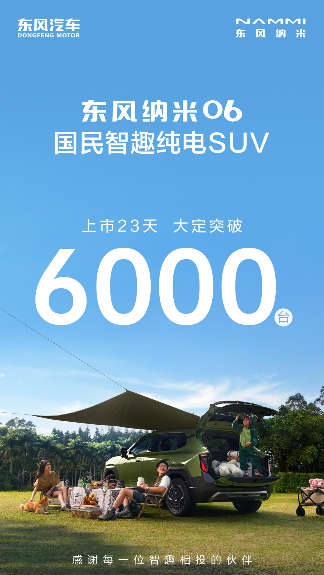 IT之家 6 月 19 日消息,东风纳米今日发文宣布,纳米 06 纯电 SUV 上市 23 天大定突破 6000 台。